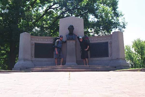 Getting a history lesson (or an eye witness account) of the Battle of Gettysburg. The old man played his part very well.