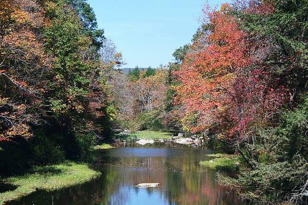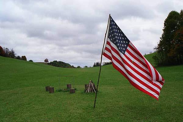 A flag and seating area was found in the middle of a green valley. They were the best fall colors yet.