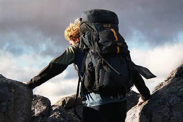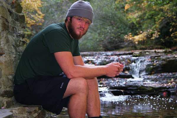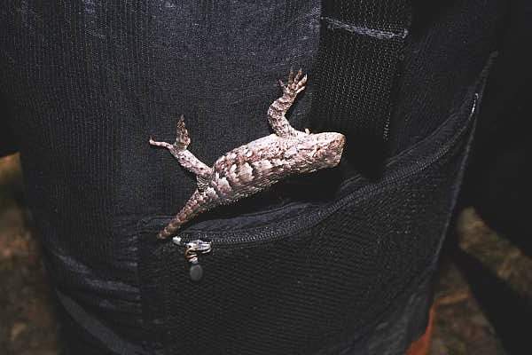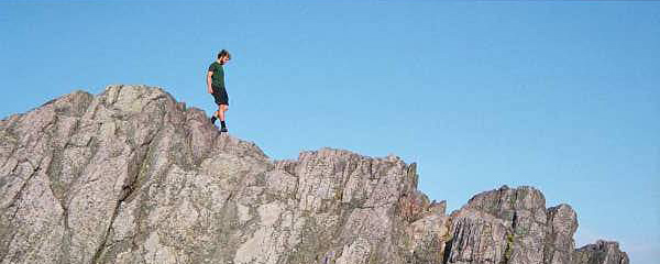 Just doing a little rock climbing. Okay, so he's standing on something.