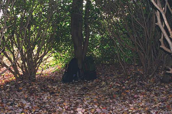 We slept under these Rhododendrons the night of the 15th on a leaf bed to get away from noisy people in the shelter nearby.