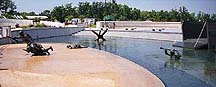 Zoomed in on the action, notice water shooting up in the background to simulate bullets hitting the surf.